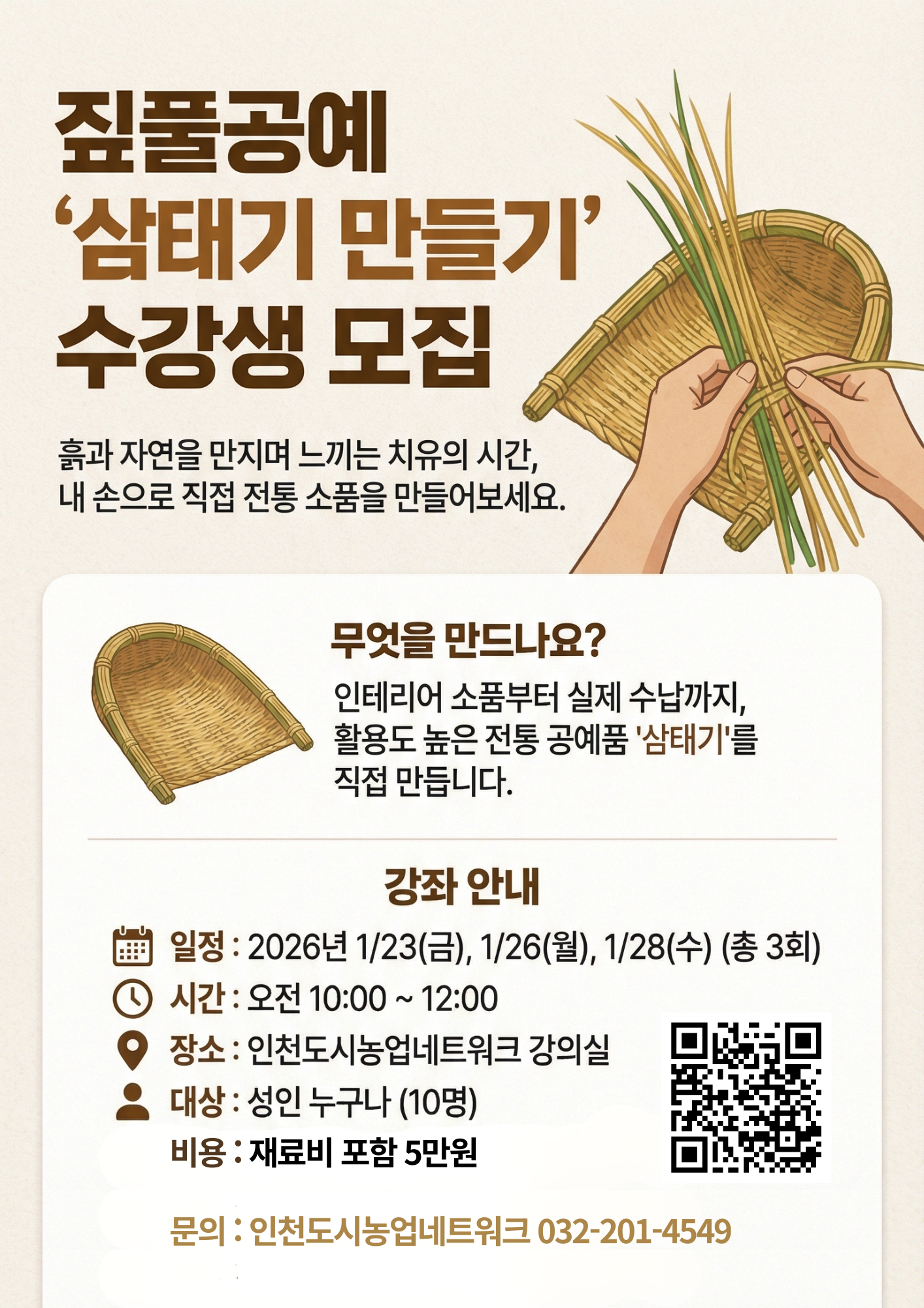 - 참가비: 재료비 포함 5만원 (농협 301-0289-4619-51 인천도시농업네트워크)